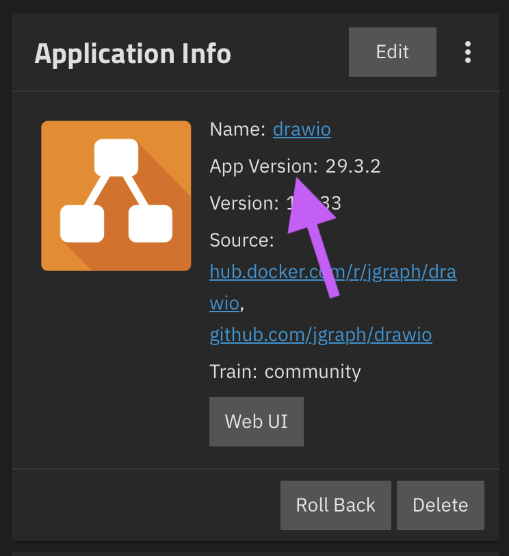 Application Infocard you will see anApp Version