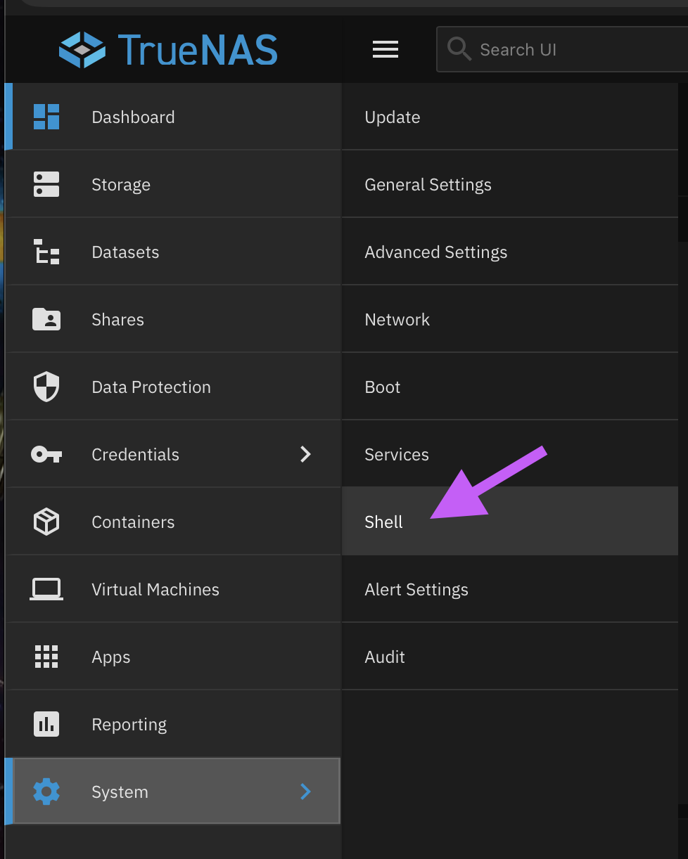 - Login to TrueNAS