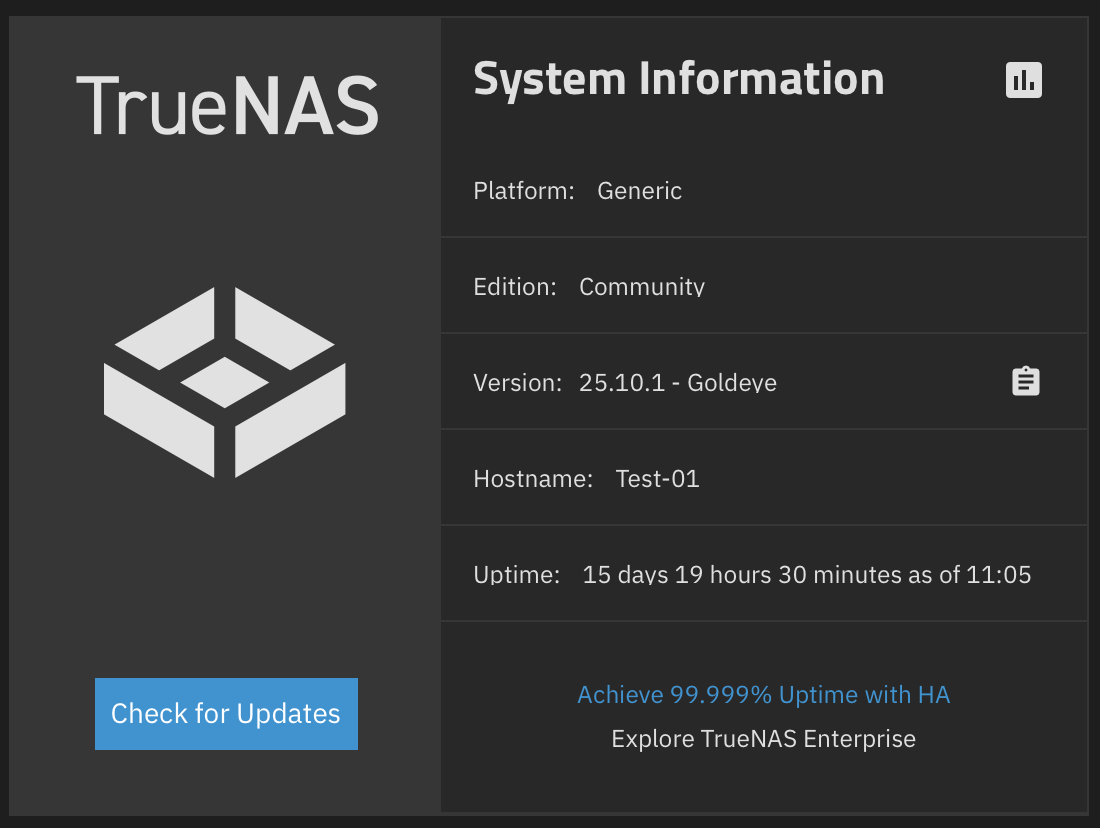 - On the system information card you will see your TrueNAS Version