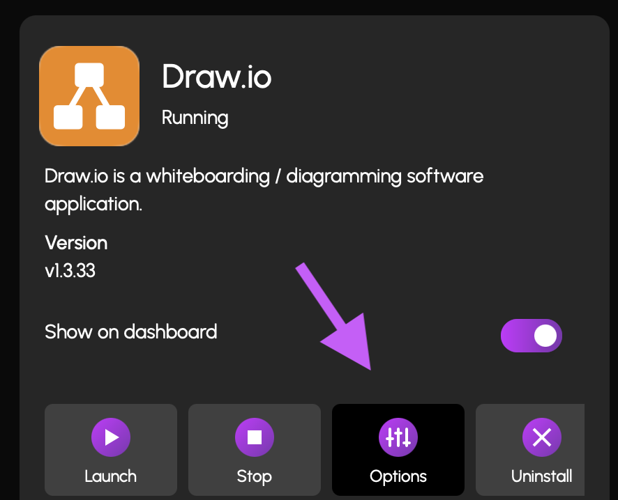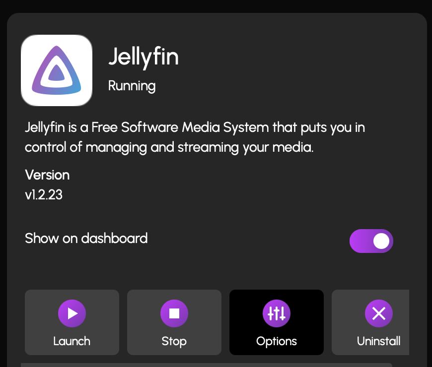 optionsbutton on the application info card