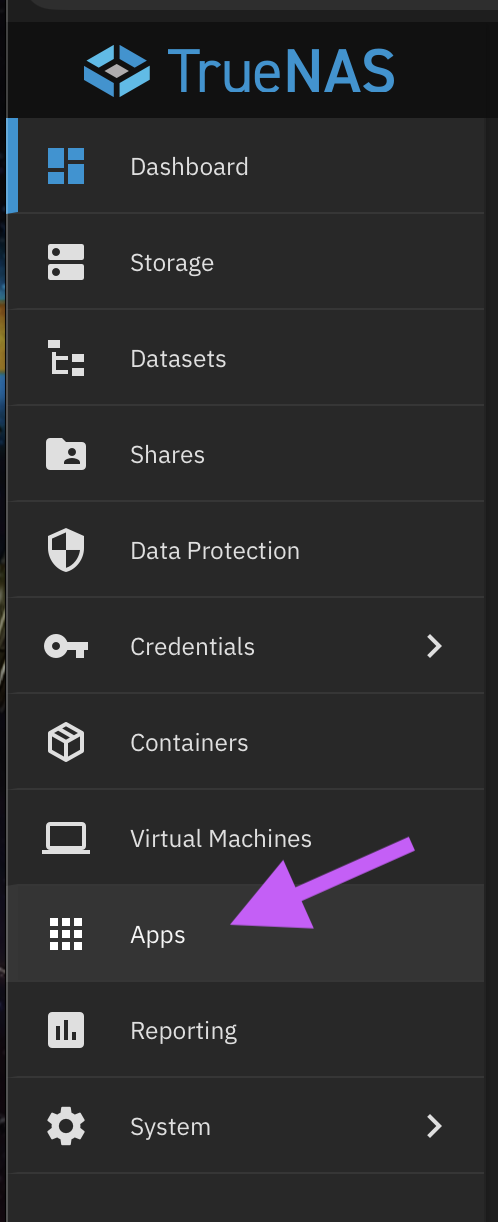 - Select the TrueNAS Button