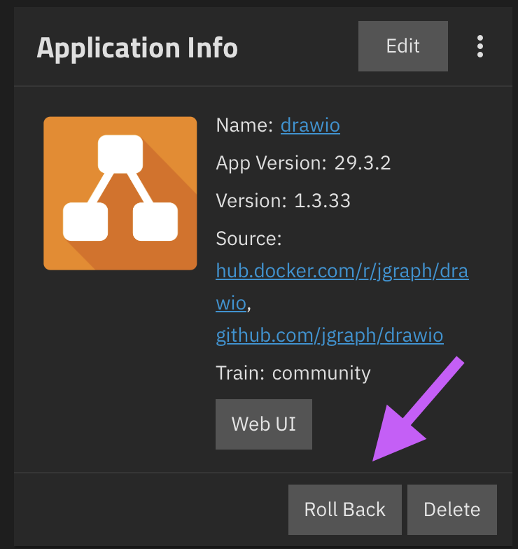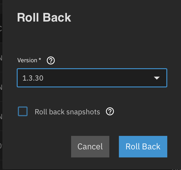 Rollbackoption on theApplication Infocard